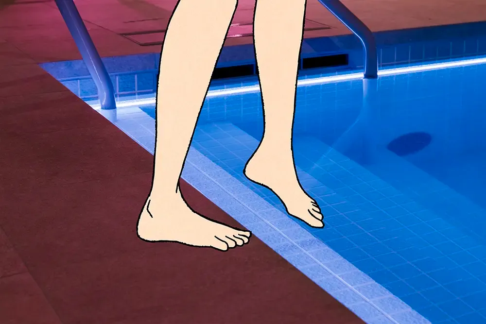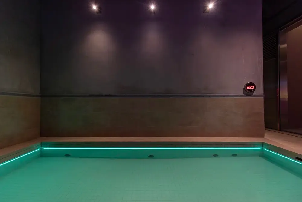 プール型水風呂:潜水OKで広々とした冷却が楽しめる。